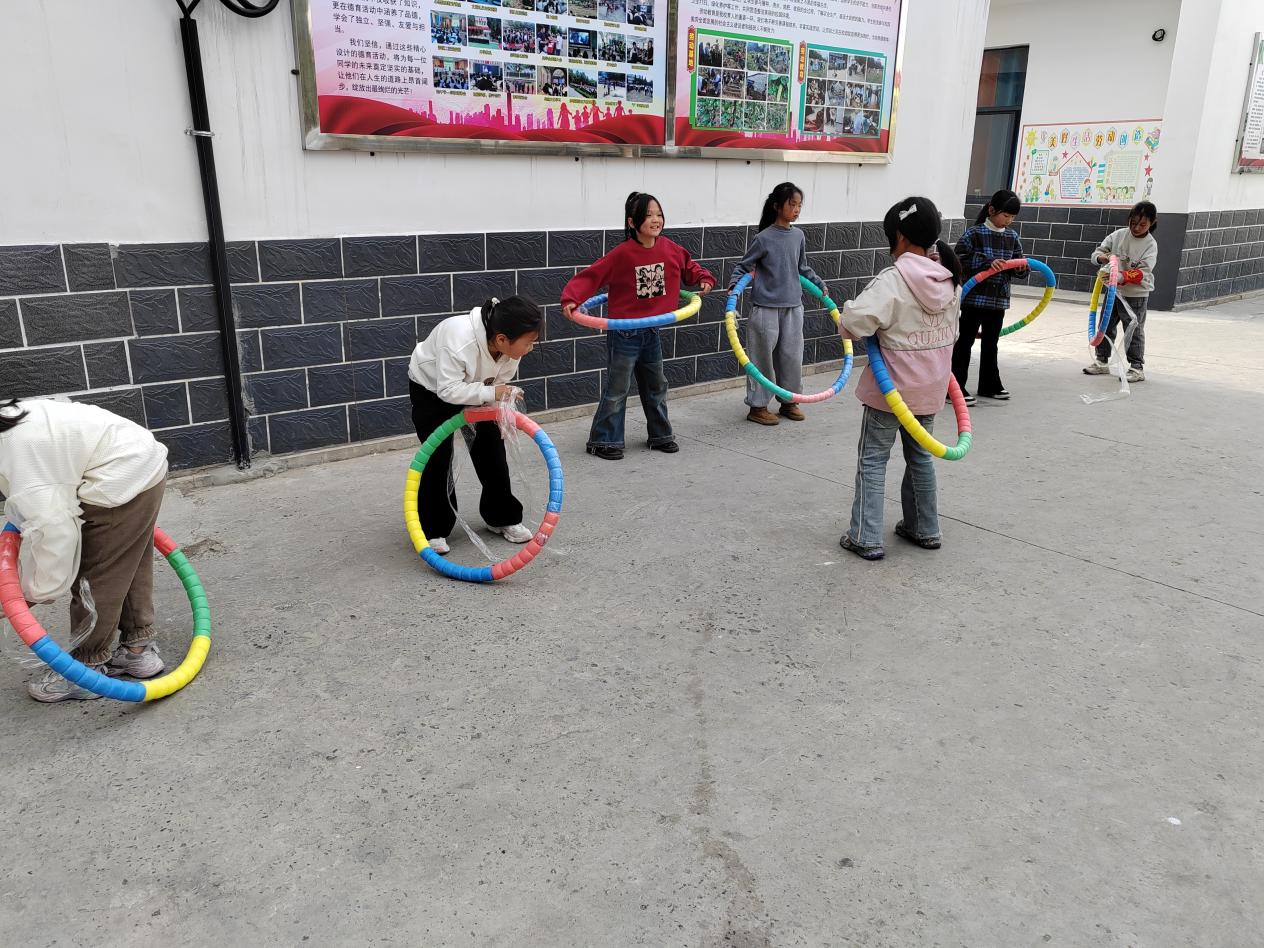 不远处,二年级的孩童手持呼啦圈,旋转出春日的斑斓。呼啦圈在腰间、臂间灵活穿梭,宛如一道道绚丽的春光,为他们的童年添上几抹亮彩。这项活动,不仅强健了体魄,更在旋转的韵律中,激发了孩子们无尽的遐想与创造,如同春日里初绽的花朵,充满无限可能。