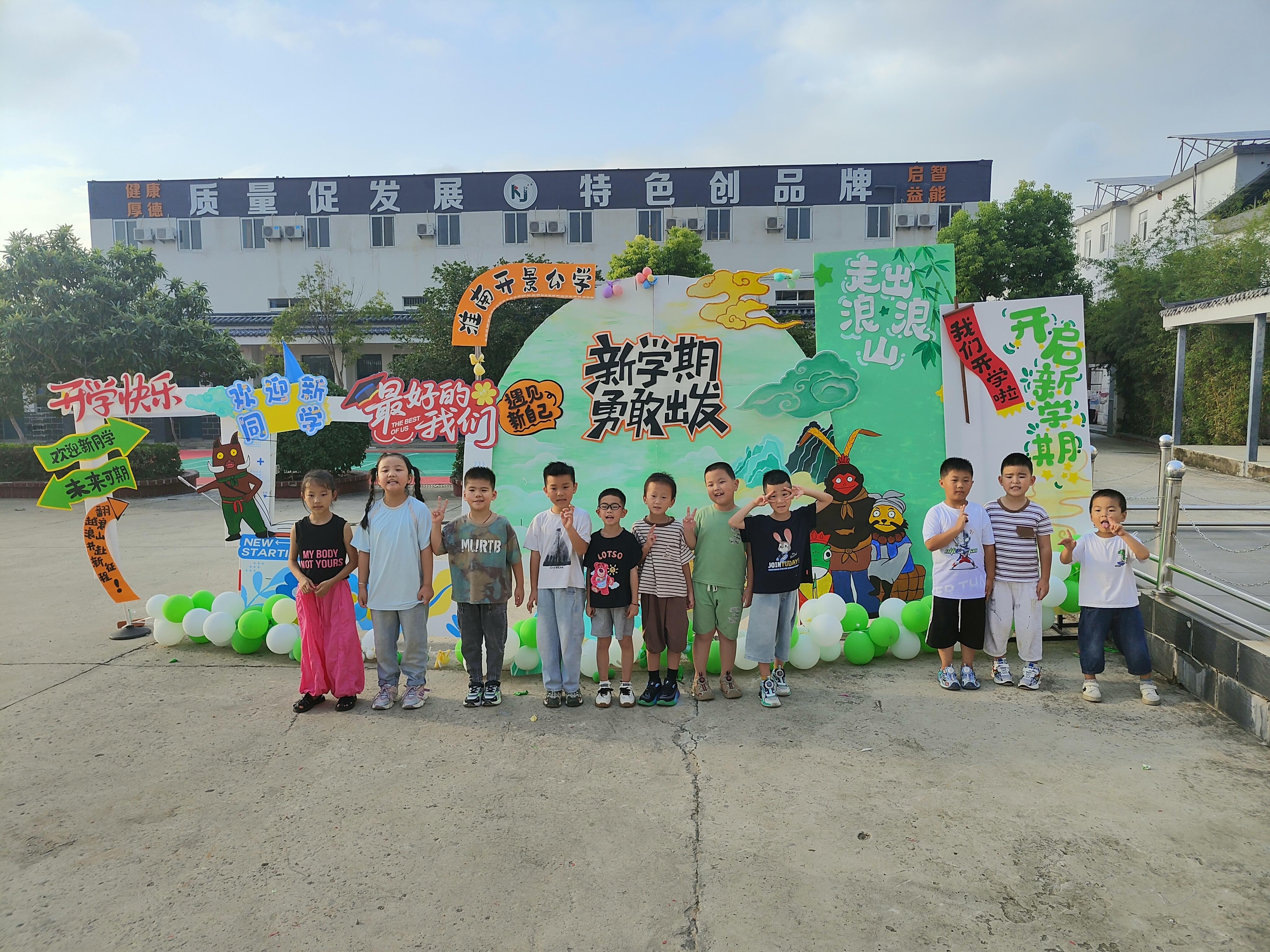 步入校园大门,一组以 “浪浪山的小妖怪” 为主题的巨型海报与拍照打卡相框瞬间吸引了师生与家长的目光。海报上,动画中可爱的小妖怪们举着 “欢迎回家” 的牌子,来欢迎新老学生的到来,色彩鲜艳、形象生动,既贴合学生们的兴趣喜好,又传递出轻松愉快的开学氛围。不少新生在家长的陪伴下,驻足打卡拍照,定格下踏入新学期的第一个美好瞬间。校园主干道两侧,五彩斑斓的彩旗迎风招展,与主题海报相映成趣,将整个校园装扮得如同童话乐园,让同学们刚进校园就感受到满满的期待与喜悦。