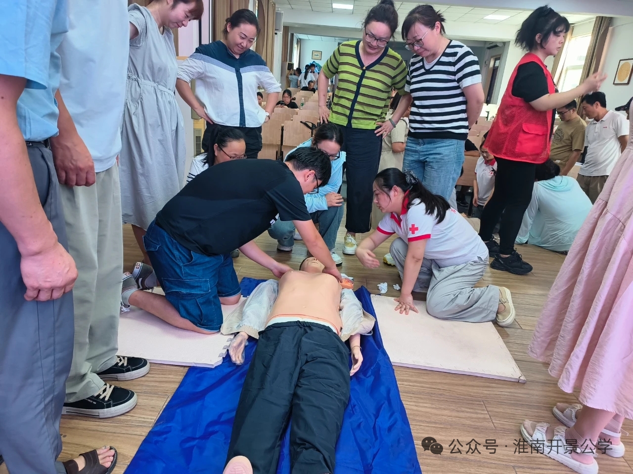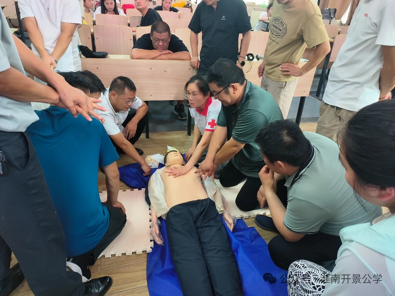 在2025年公共安全需求日益凸显的背景下,“人人学急救,急救为人人”的理念正深入人心。淮南开景公学以“生命至上,安全护航”为宗旨,于8 月 29 日特邀淮南市红十字会专业团队入校,开展了一场覆盖心肺复苏(CPR)、自动体外除颤器(AED)使用及气道梗阻急救的专项培训。这场培训不仅是对校园安全体系的深化,更是对“健康中国”战略的积极响应——当意外来袭,每一双手都可能成为托起生命的希望,每一次精准操作都可能改写生死结局。