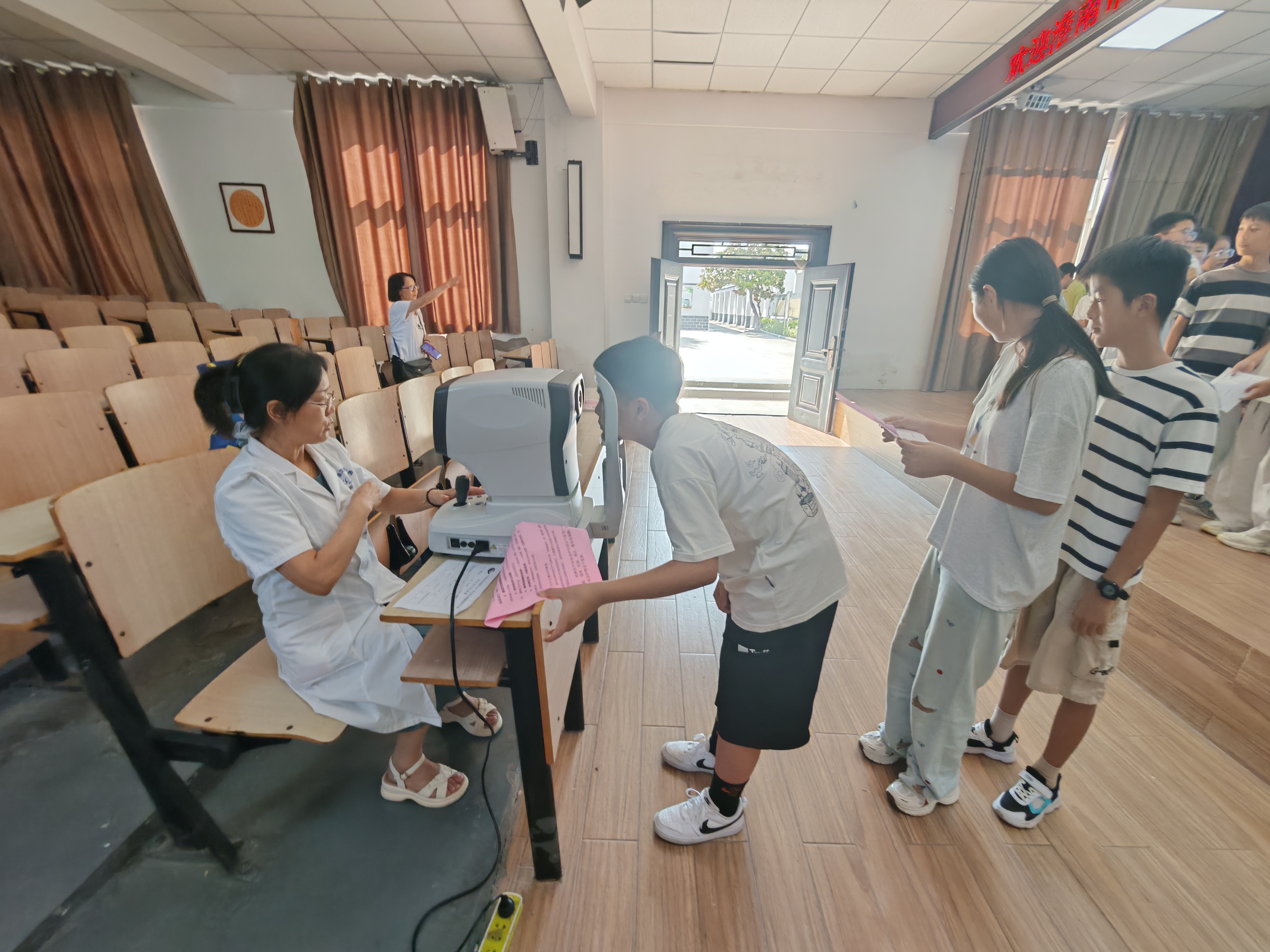 现场的同学们积极配合,按照工作人员的指引完成各项检测步骤,展现出良好的纪律性。同学们在检测后纷纷表示:“通过这次检测,我知道了自己的视力情况,以后会听老师和医生的话,少看手机,多去操场跑步,保护好自己的眼睛。”