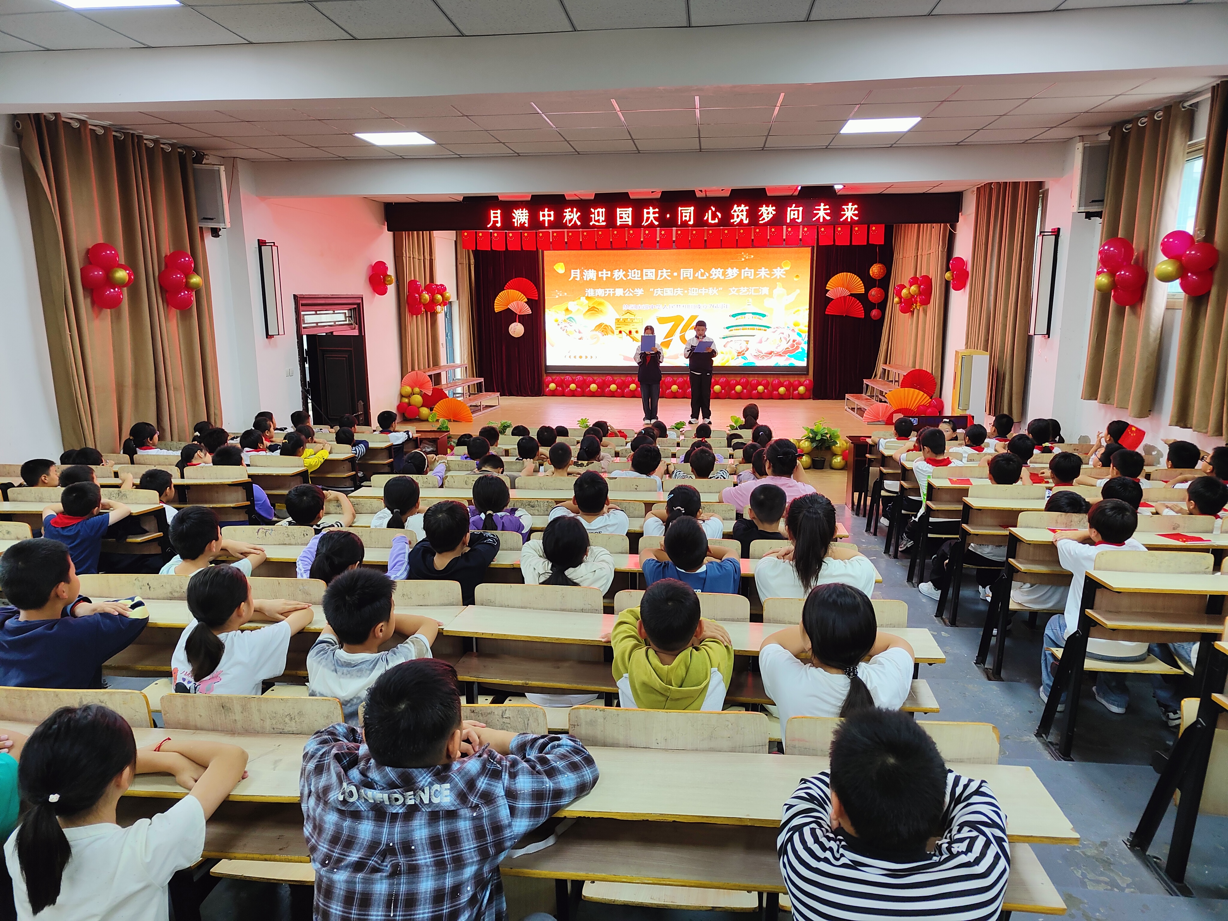 金秋送爽,丹桂飘香,在中秋与国庆双节将至的美好时节,2025 年 9 月 27 日下午 2 时 20 分,淮南开景公学内掌声雷动、欢歌笑语,“2025 月满中秋迎国庆・同心筑梦向未来” 文艺汇演正式拉开帷幕。全体师生欢聚一堂,用灵动的舞姿、激昂的朗诵、嘹亮的歌声,共庆佳节,抒发对祖国的热爱与对未来的憧憬。