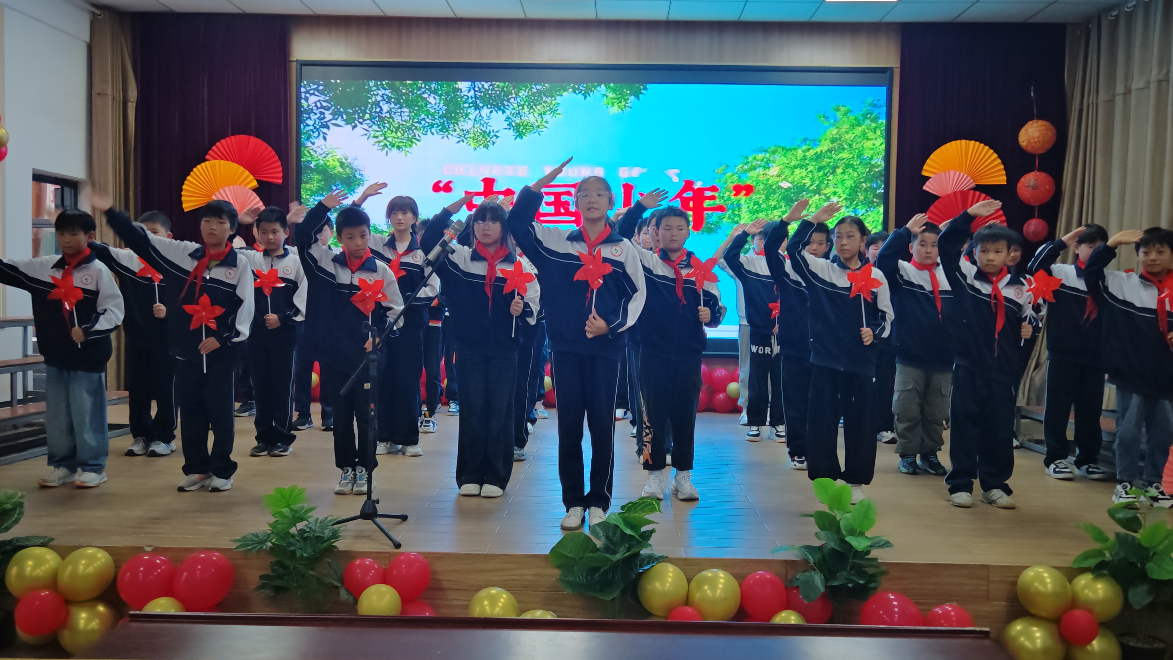 随后,四(1)班同学以诗朗诵《我的祖国》点燃全场爱国情怀。当 “当五星红旗在天安门广场冉冉升起,那抹耀眼的中国红,映照着我们心中的崇敬与自豪” 的话语响起,孩子们饱含深情的声音回荡在校园里,一字一句都充满对祖国壮丽山河与辉煌成就的赞美。他们的朗诵字字情真、句句动人,让在场师生深深感受到对祖国的眷恋与骄傲,爱国之情在每个人心中激荡。