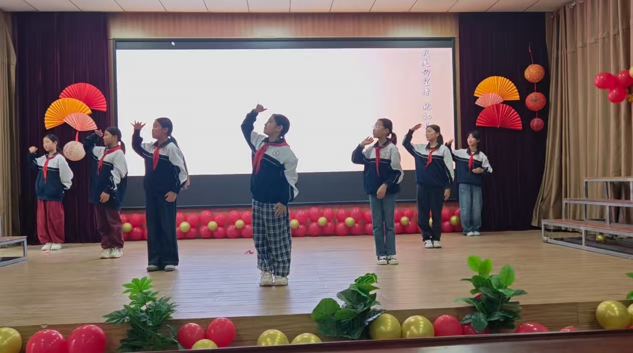 四(2)班的舞蹈《阳光少年》则为汇演注入了满满的活力。孩子们如同初升的太阳,在舞台上尽情跳跃、转身,每一个动作都充满阳光气息,展现出新时代少年朝气蓬勃、活力满满的精神风貌。他们用舞蹈诠释着 “以信念为笔,书写青春的誓言;以实干为墨,描绘时代的蓝图” 的少年担当,让现场气氛愈发热烈。