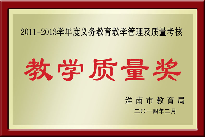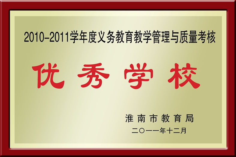 淮南市教育教学管理与质量考核优秀学校。